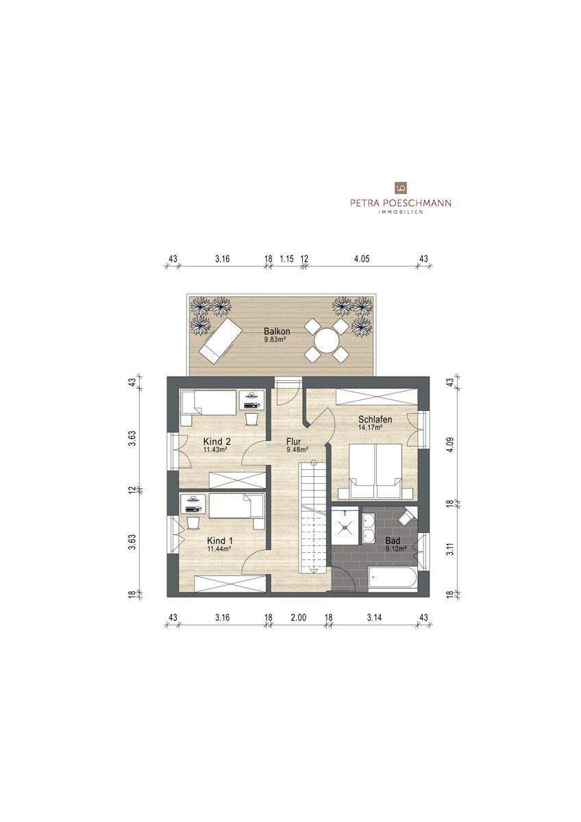 • Grundriss bemaßt DG -