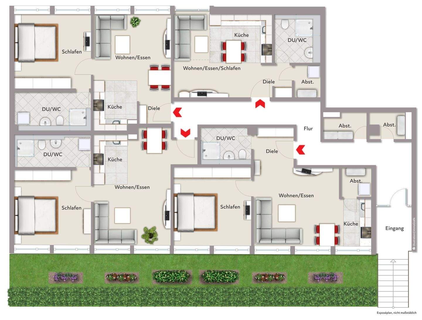 • Gesamt-Grundriss 4 Wohnungen -