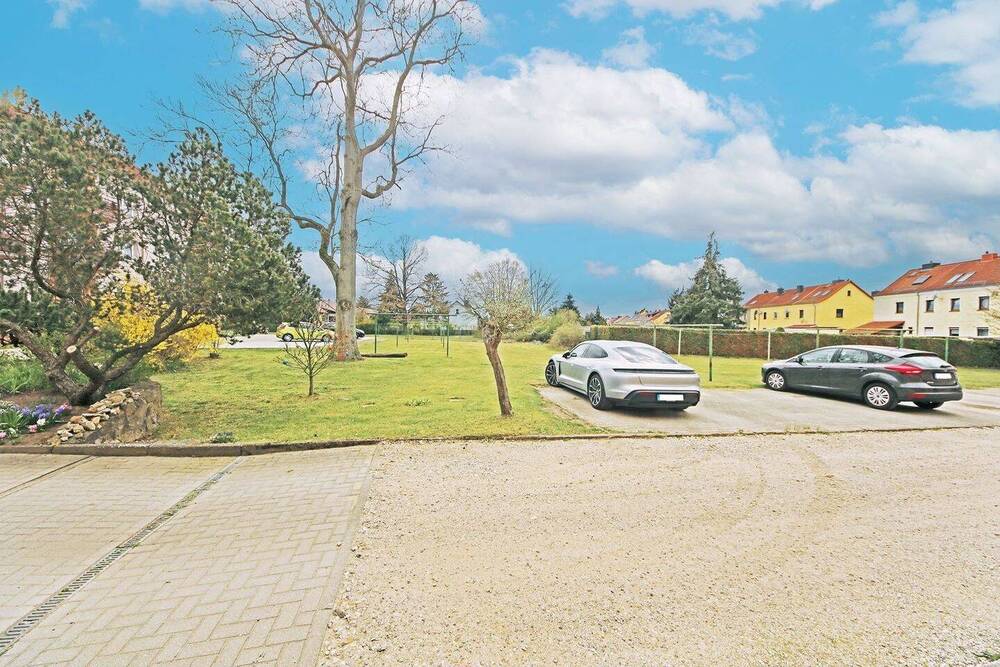 Hausansicht / Grundstücksseite - hochwertig ausgestattete 3-Zimmer Eigentumswohnung inkl. Einbauküche und Stellplatz in Roßlau