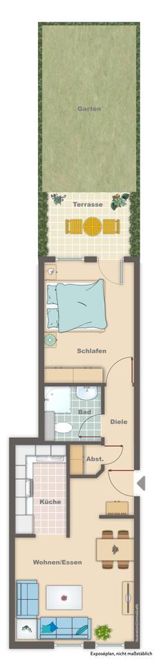 Sie befinden sich hier: Ideal für eine Einzelperson! Pfiffige 2-Zimmer-Wohnung mit Terrasse und eigenem Garten in Leverkusen Schlebusch - 3356964117-203-1995 | 1A-Immobilienmarkt.de