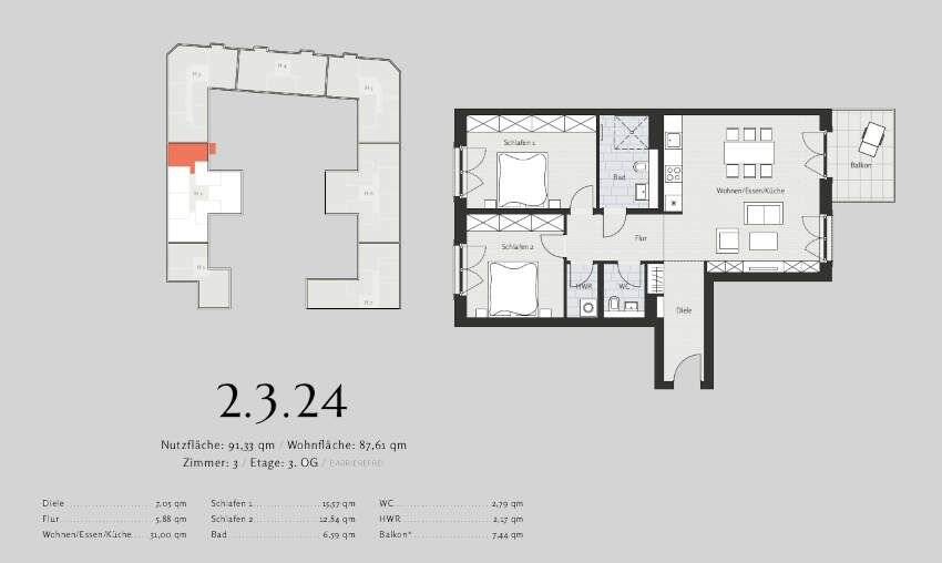 Wohnfläche:ca. 87,60 m²