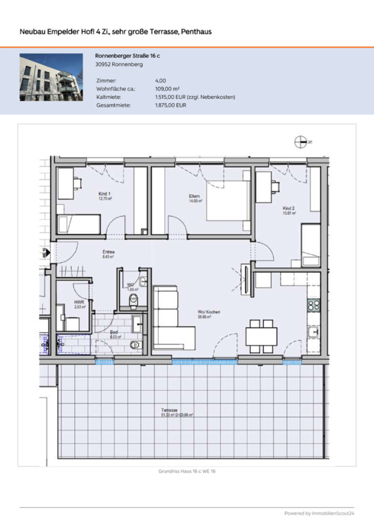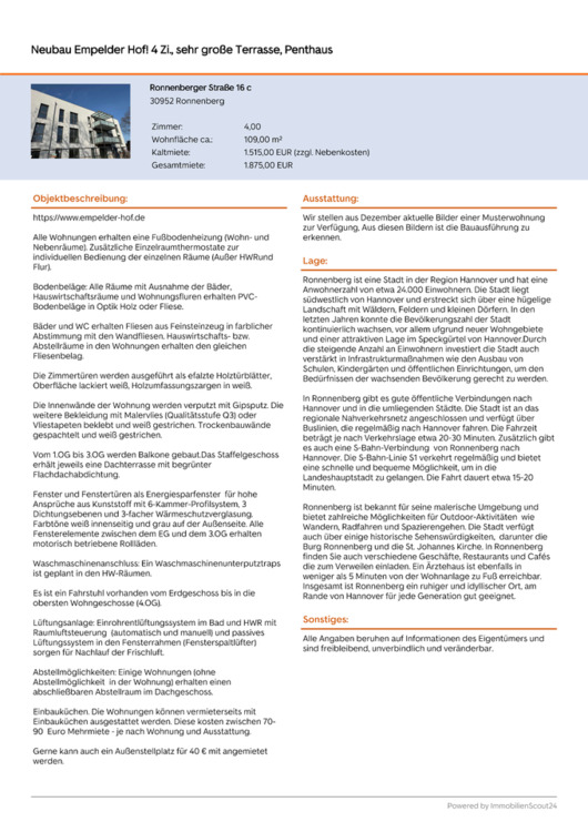 Sie befinden sich hier: Neubau Empelder Hof! 4 Zi., sehr große Terrasse, Penthaus in Ronnenberg - 3356940629-203-2904 | 1A-Immobilienmarkt.de