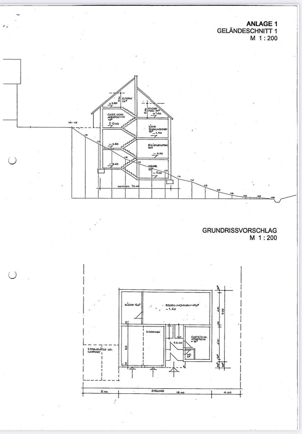 Geländeschnitt u. Grundrissvorschlag 1 -
