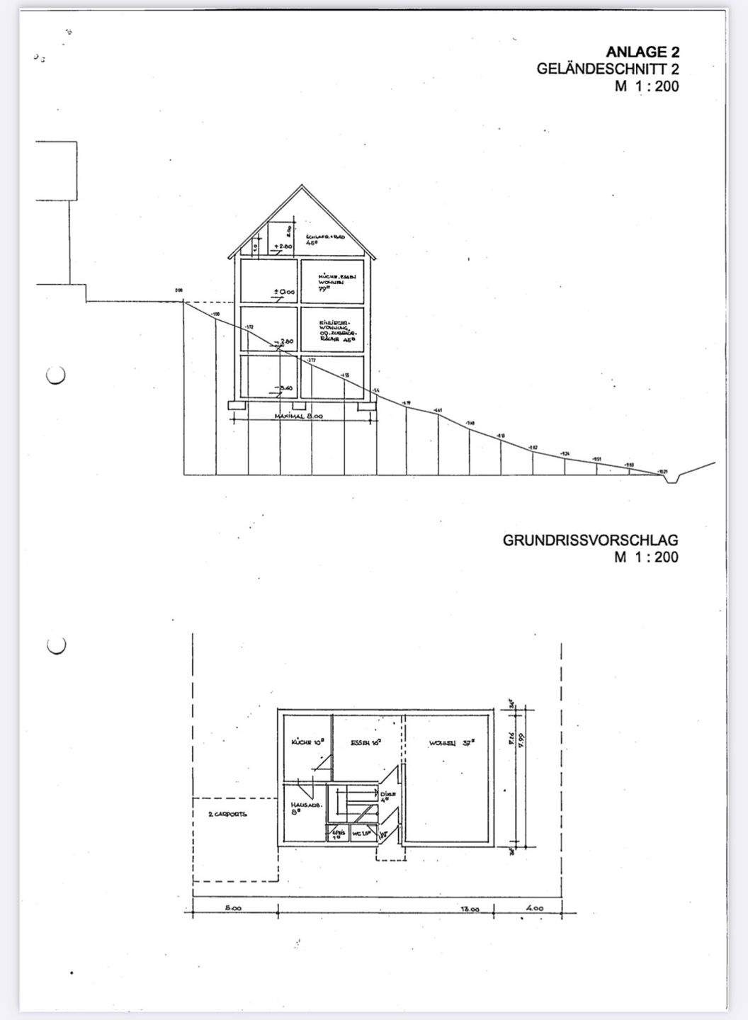 Geländeschnitt u. Grundrissvorschlag 2 -