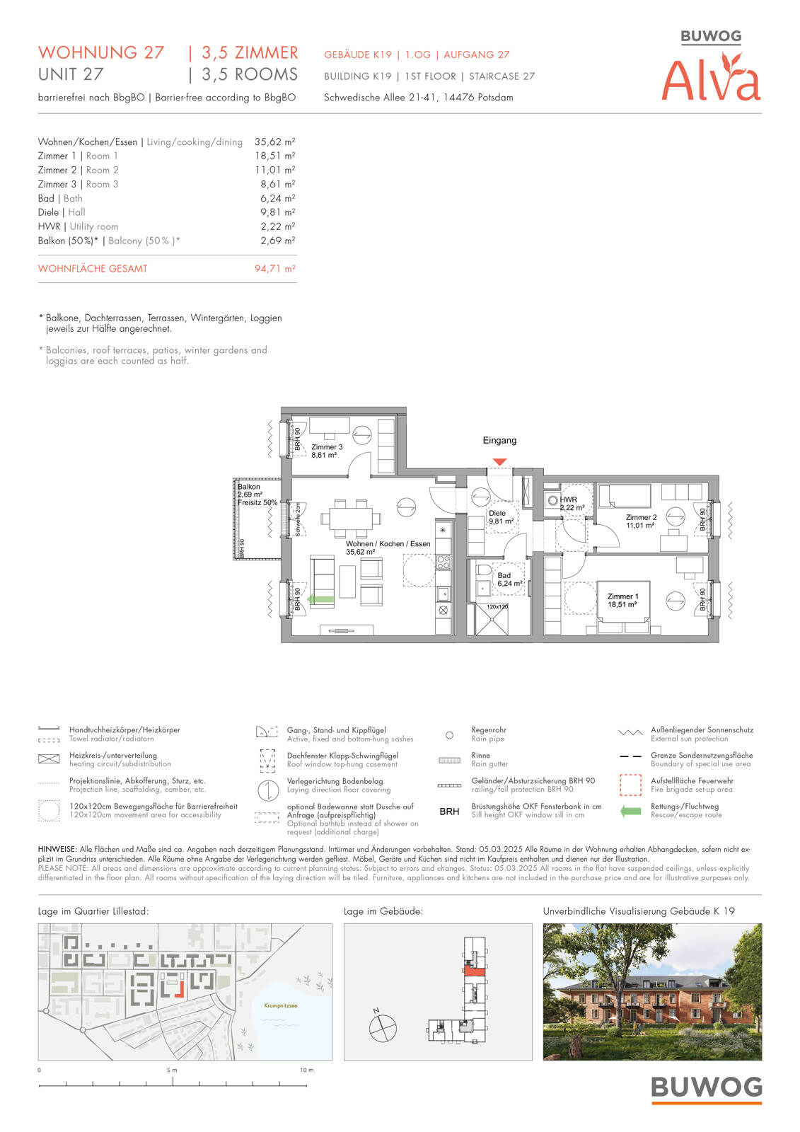 Sie befinden sich hier: Einziehen und Wohlfühlen! Tolle und barrierefreie 3 Zimmer-Wohnung mit ca. 94m² und schönem Balkon in Potsdam Krampnitz - 25WLFEQBGYEG | 1A-Immobilienmarkt.de