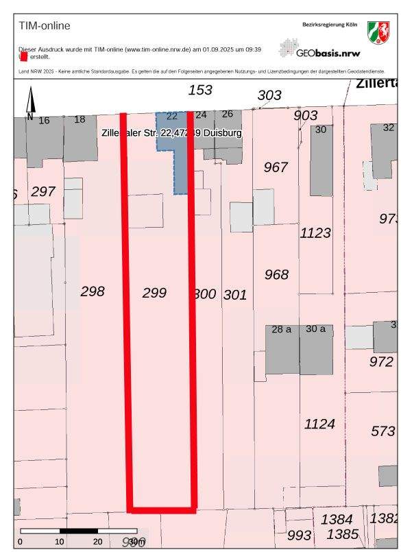 • Flurkarte_Zillertaler22.jpg - Sehr großes Grundstück (1655 m²) in Duisburg-Buchholz, gute Lage, Hinterlandbebauung möglich.