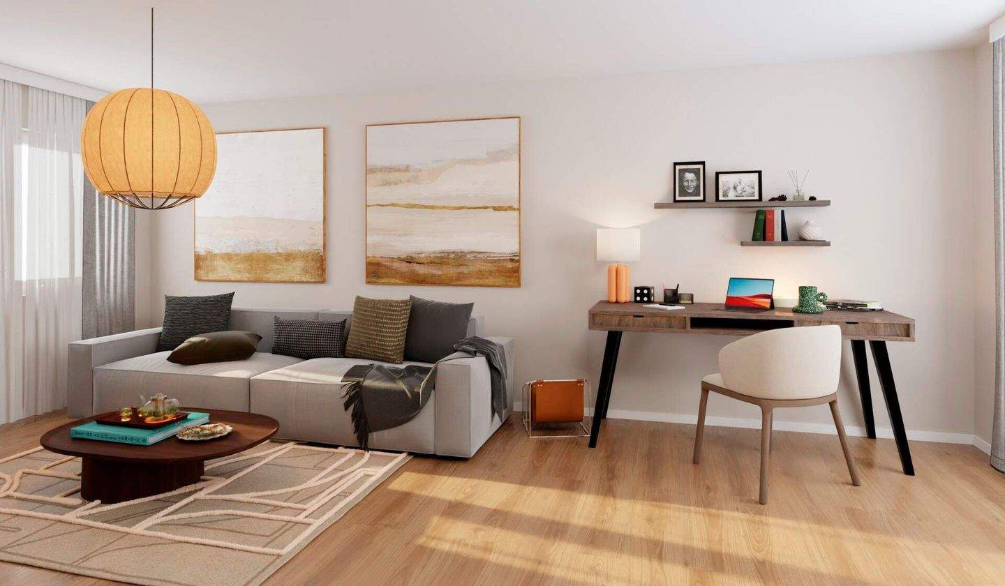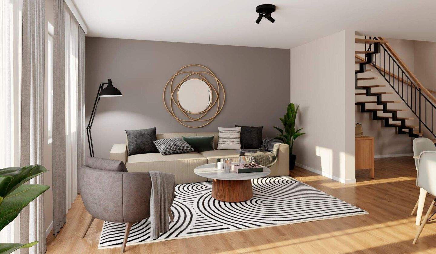 • Lichtdurchfluteter Wohnbereich dank bodentiefer Fenster -