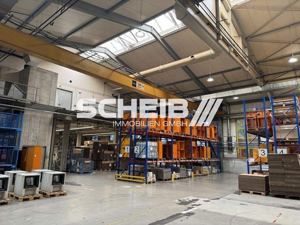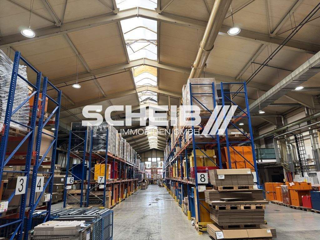 hohe Halle, ideal für Regale - Gewerbeanwesen mit Hallen, Büros und Freiflächen zu verkaufen