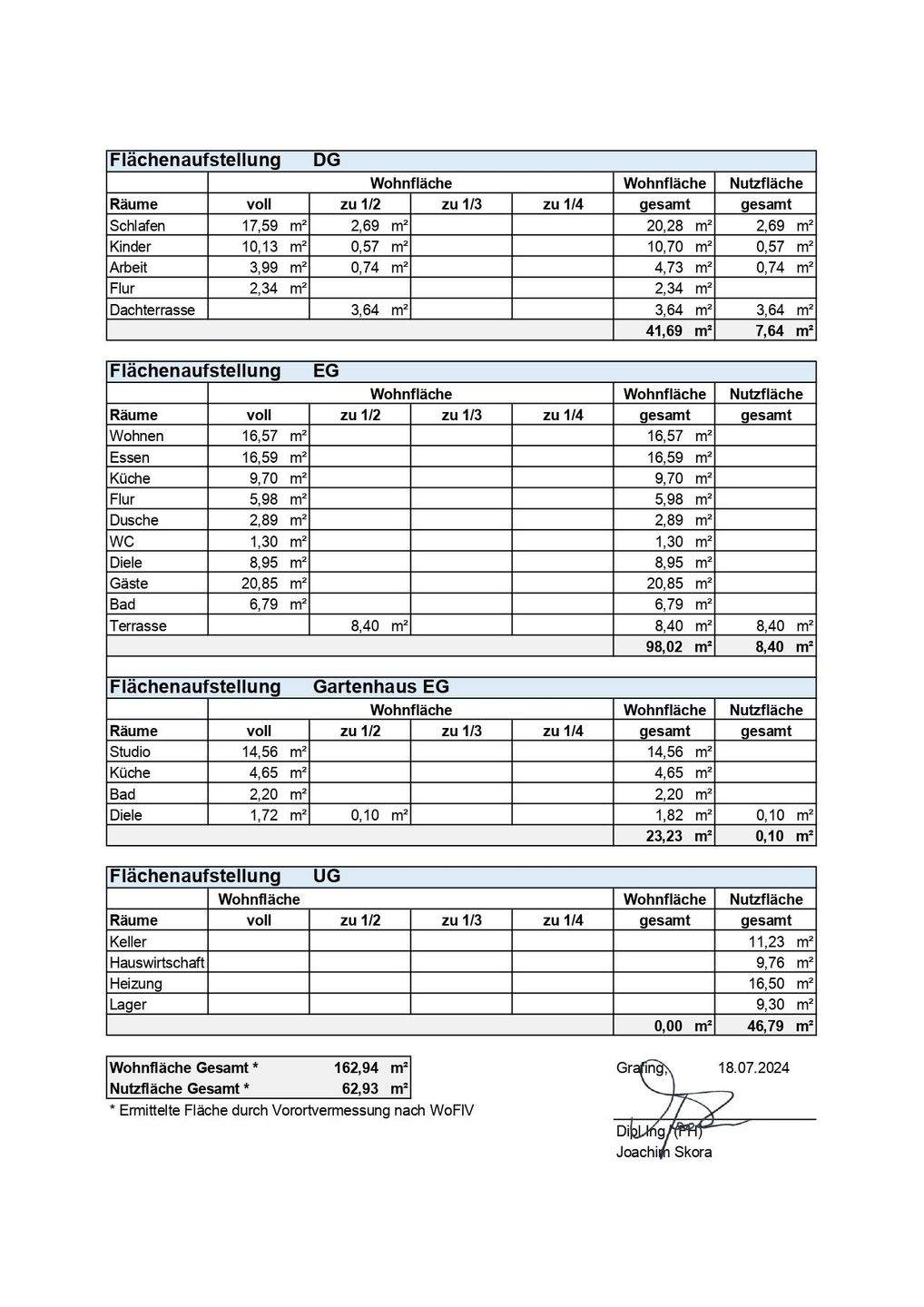 • Wohnflächenaufstellung -