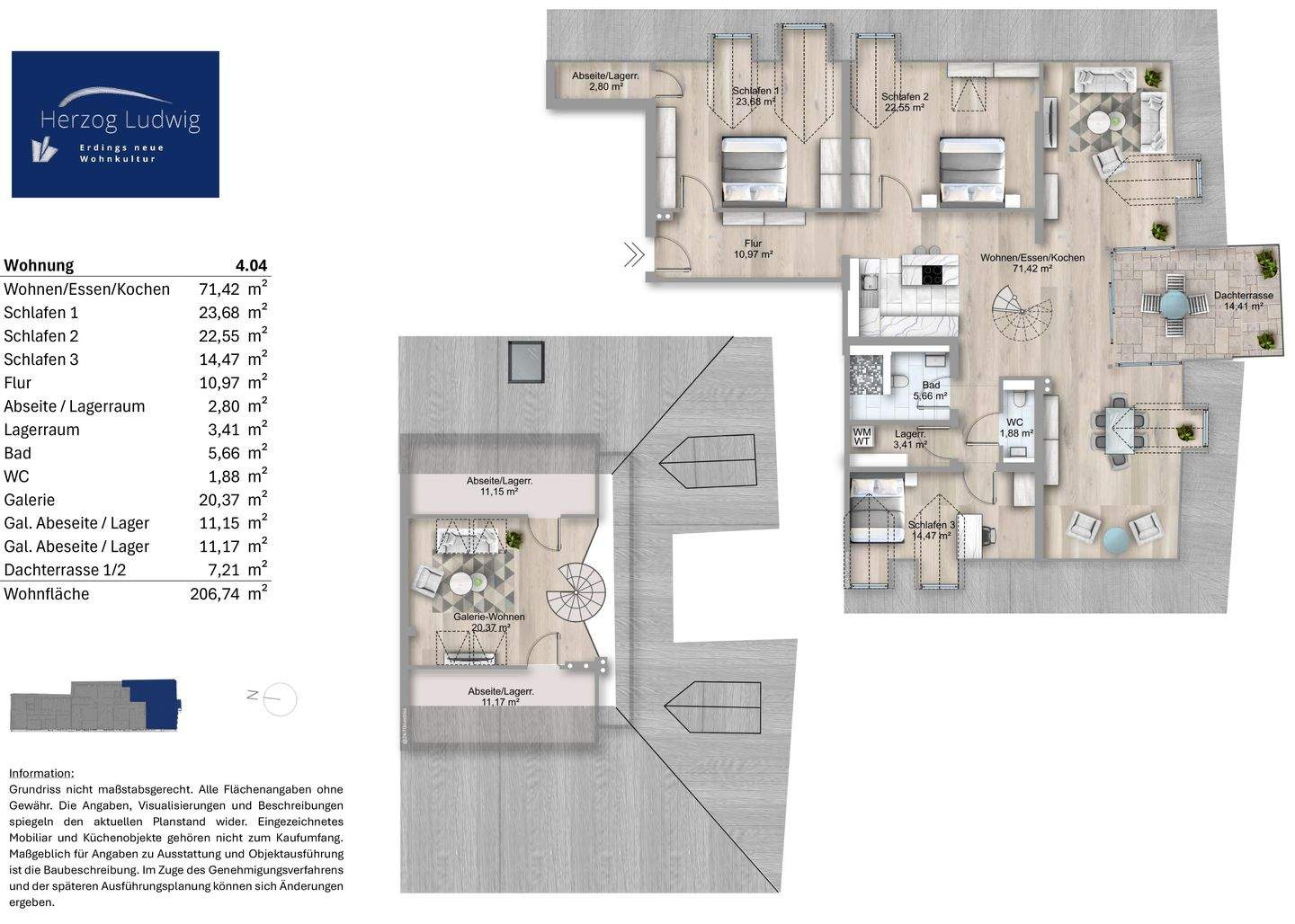 Galerie-Wohnen deluxe - HERZOG LUDWIG: XXL-Galeriewohnung mit Süd-Dachterrasse im Herzen Erdings