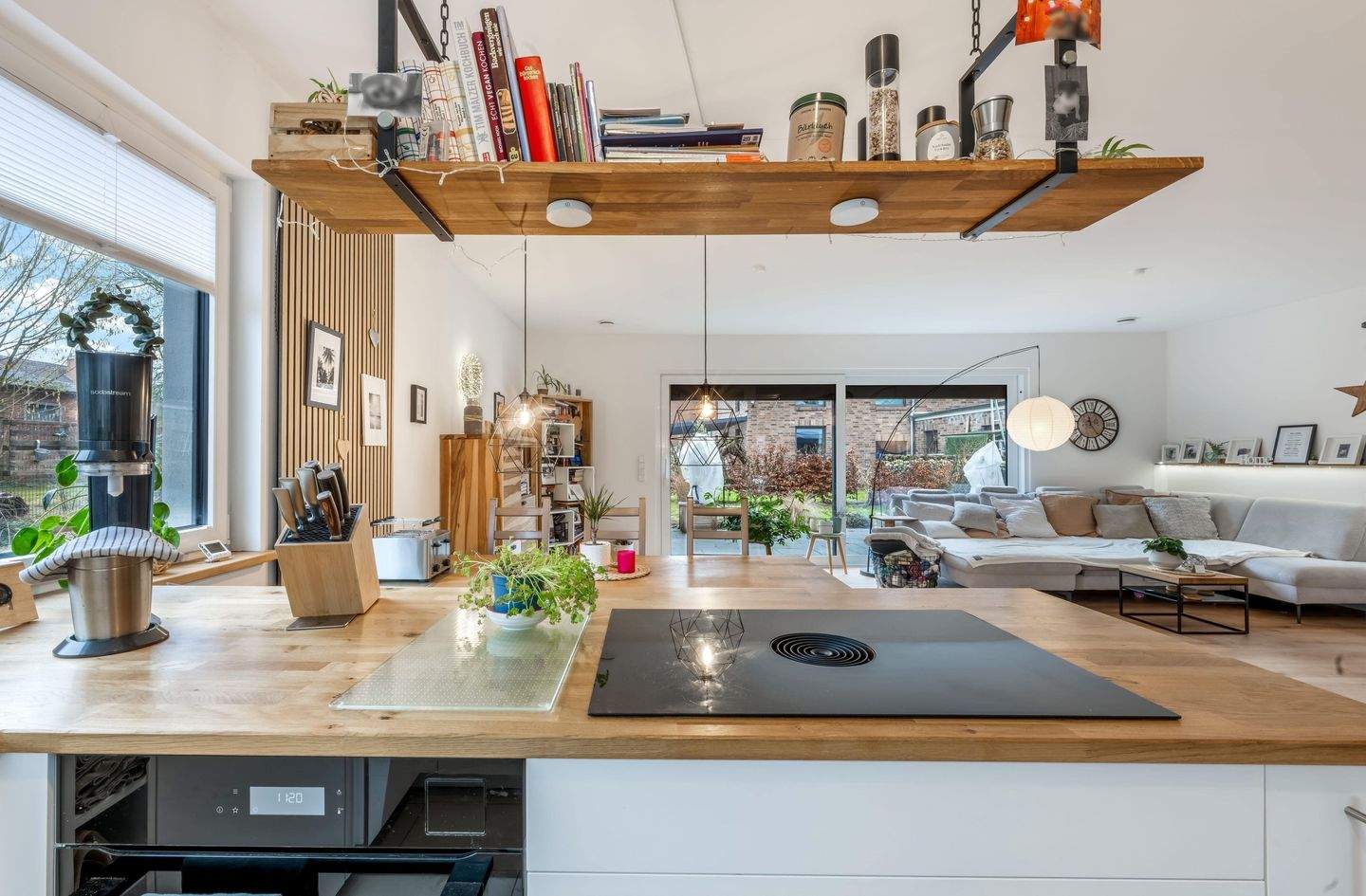 • Blick aus dem Küchenbereich in den Wohnbereich -