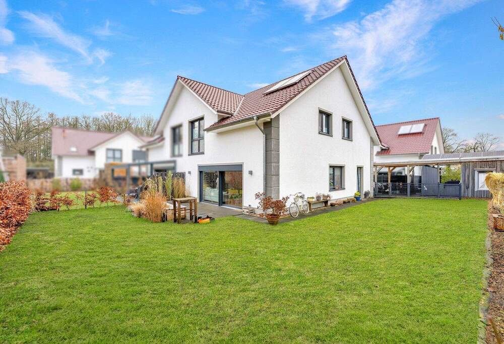 • Blick von der Terrasse in den Garten - Doppelhaushälfte mit 137,70 m² in Kirchlinteln zum Kaufen
