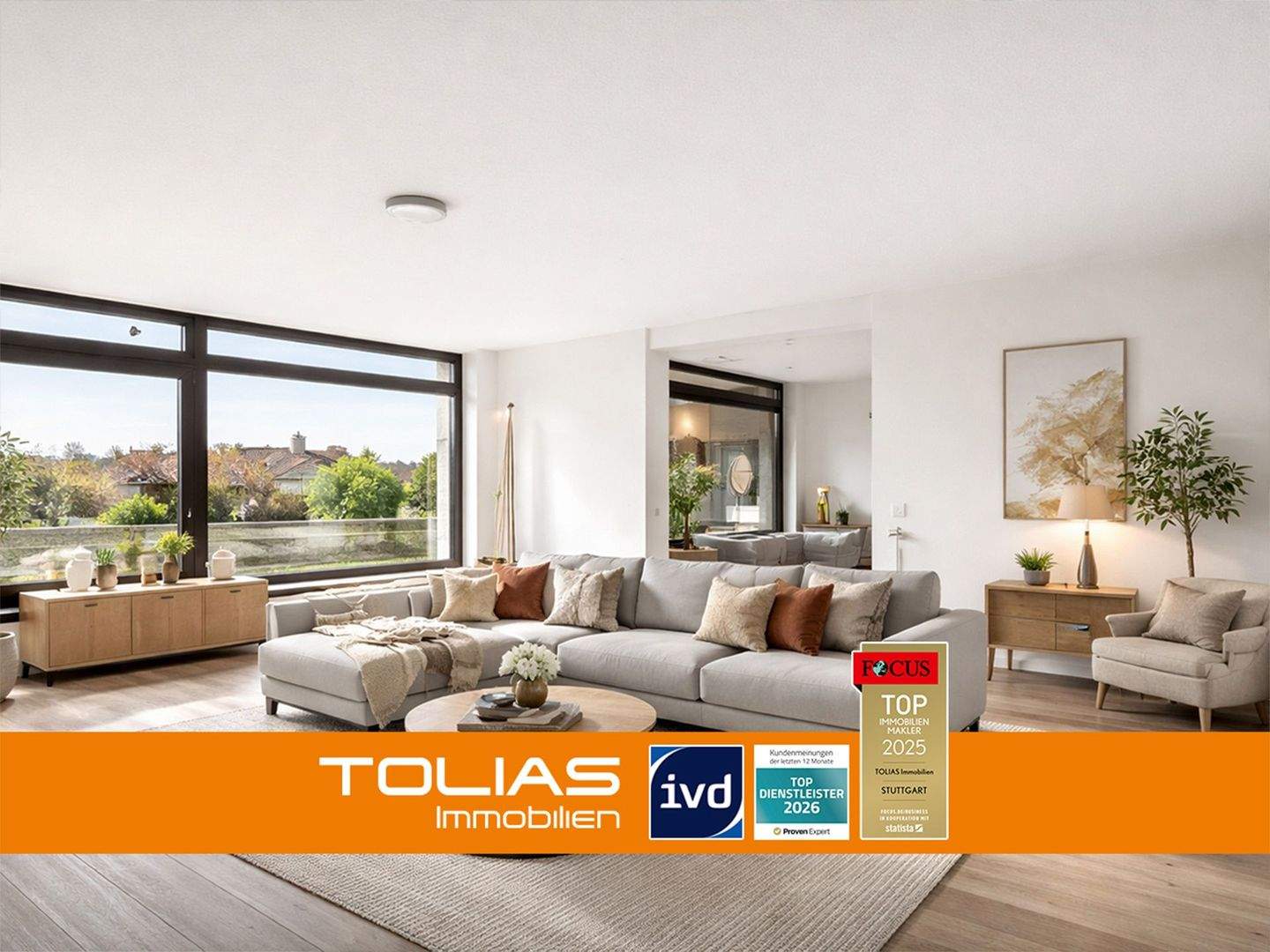 Sie befinden sich hier: Sorgenfreie Sonnenstunden: grenzenloses Raumgefühl auf 4 Zimmern mit Südbalkon & Garage in Korntal-Münchingen - 26P3AD5VQ34V | 1A-Immobilienmarkt.de