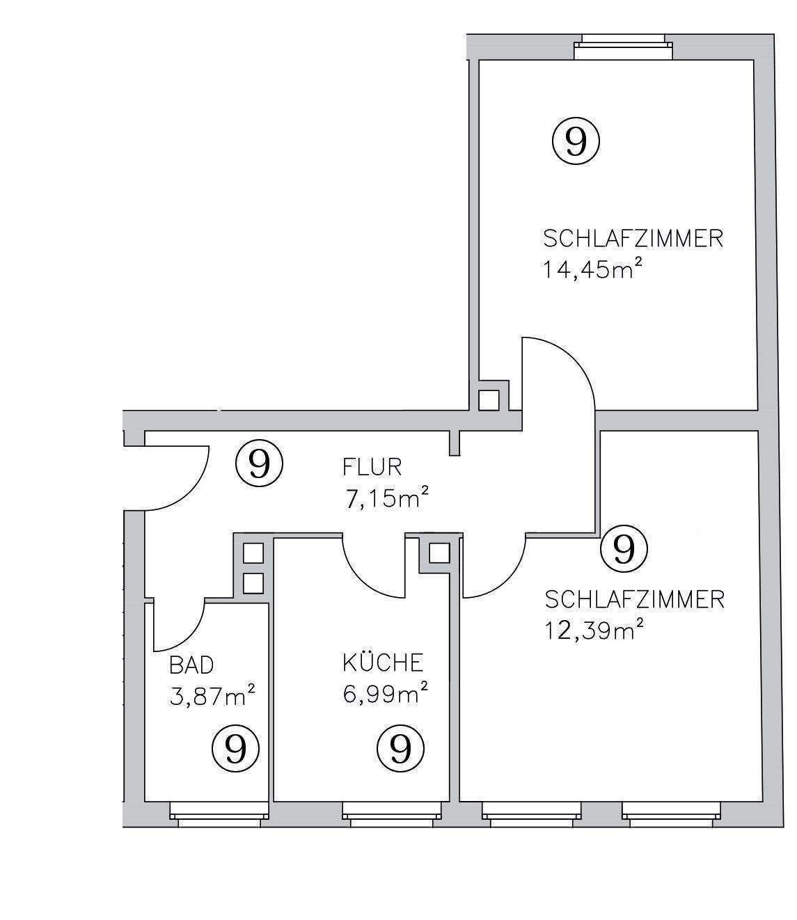 Grundriss 2-Zimmer-Wohnung im 2.OG -