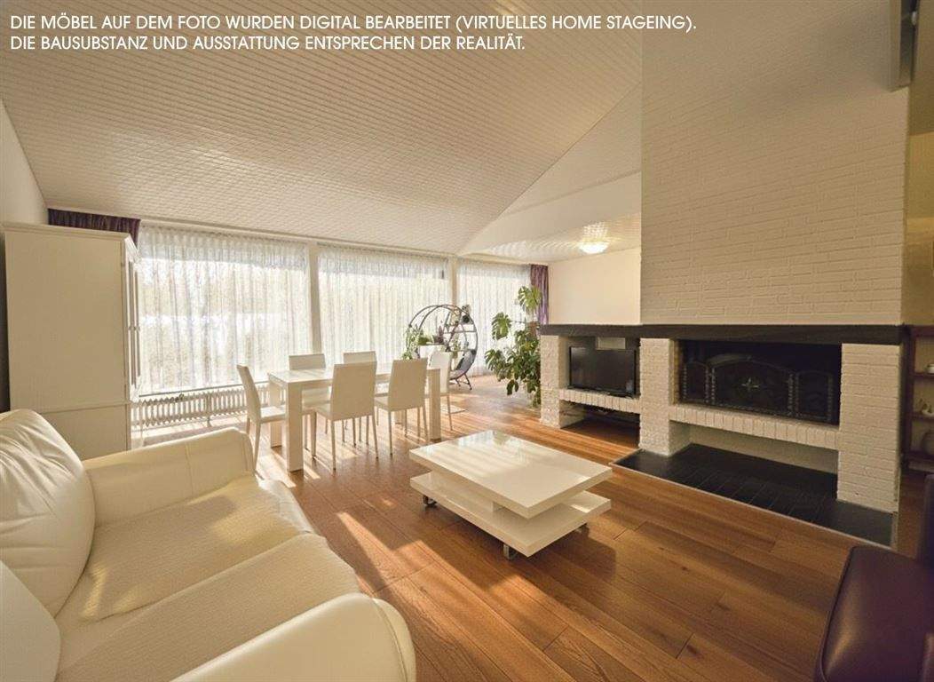 • Wohnzimmer mit ca. 8 m Fensterfront und Kamin - 9 Zimmer Einfamilienhaus in Norderstedt