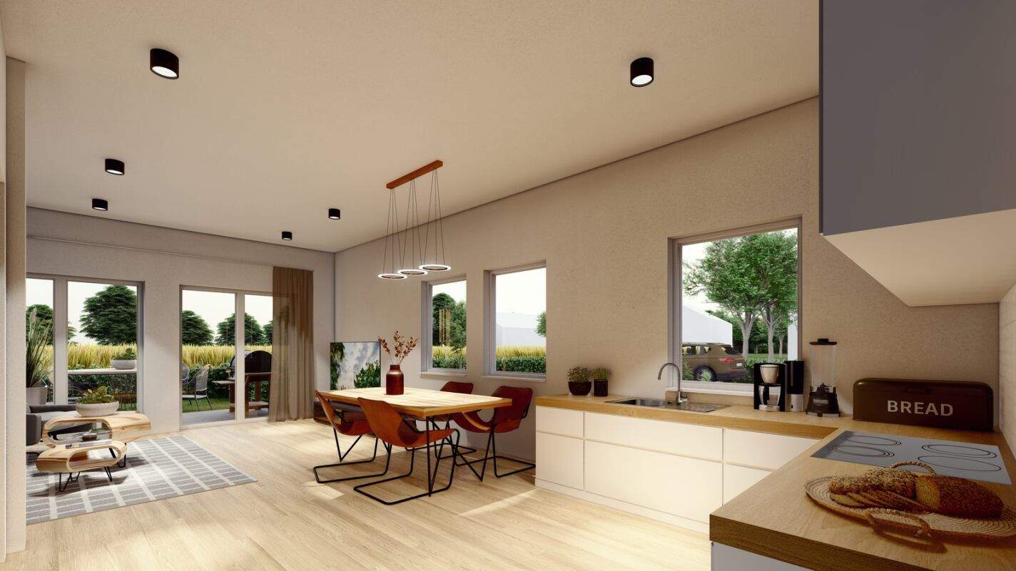 • Wohnzimmer mit offener Küche -