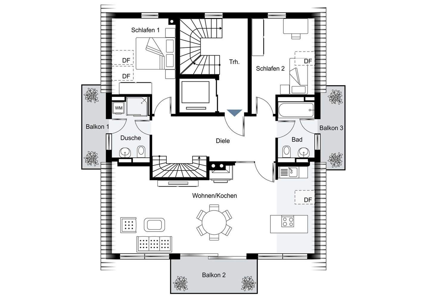 Atemberaubende Dachgeschoss mit drei Balkonen