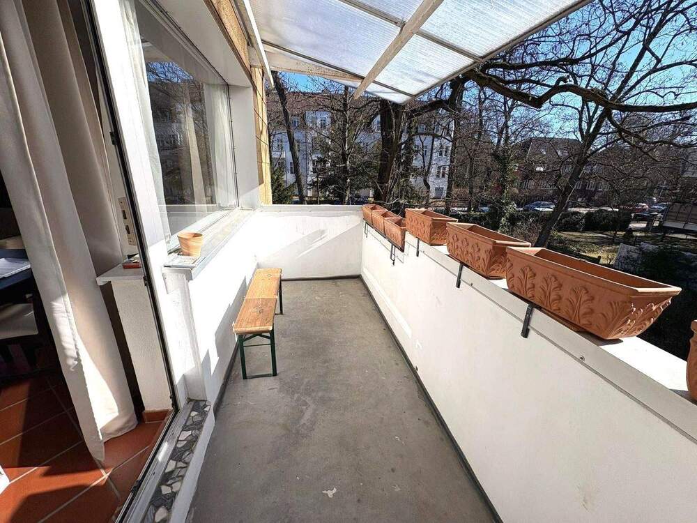 • Blick von außen auf den terrassenartigen Balkon - 3 Zimmer Etagenwohnung in Berlin