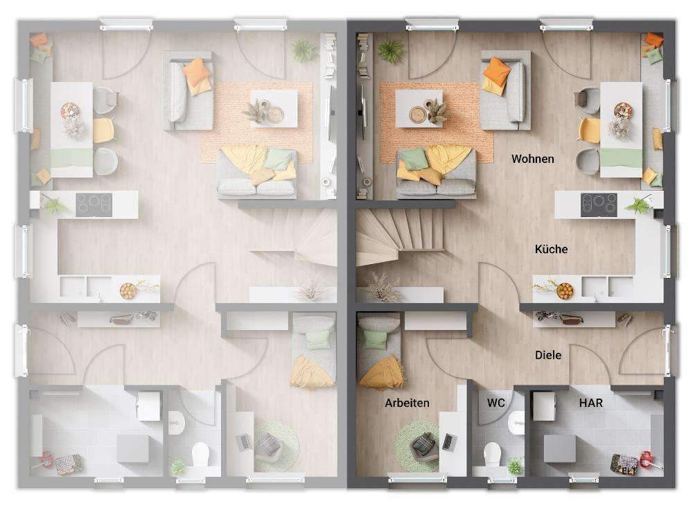 • Doppelhaus-Aura-115-Garten-Elegance-dark - Mit Grundstück: Ihr Doppelhaus in Esebeck kombiniert urbanes Lebensgefühl mit ländlichem C...