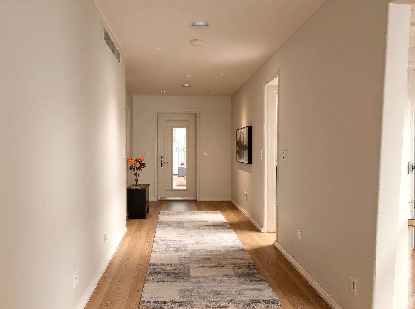 • Lichtdurchfluteter Eingangsbereich mit eleganter Raumaufteilung und hochwertiger Holzdielen-Optik -