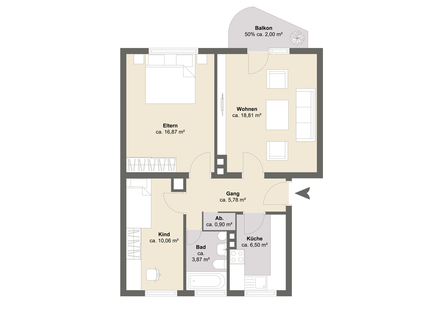Wohnfläche:ca. 65,00 m²