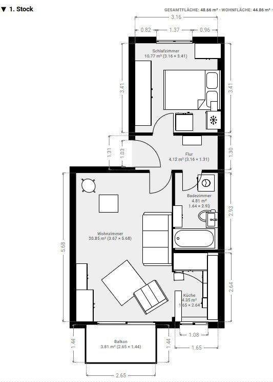 Wohnfläche:ca. 47,00 m²