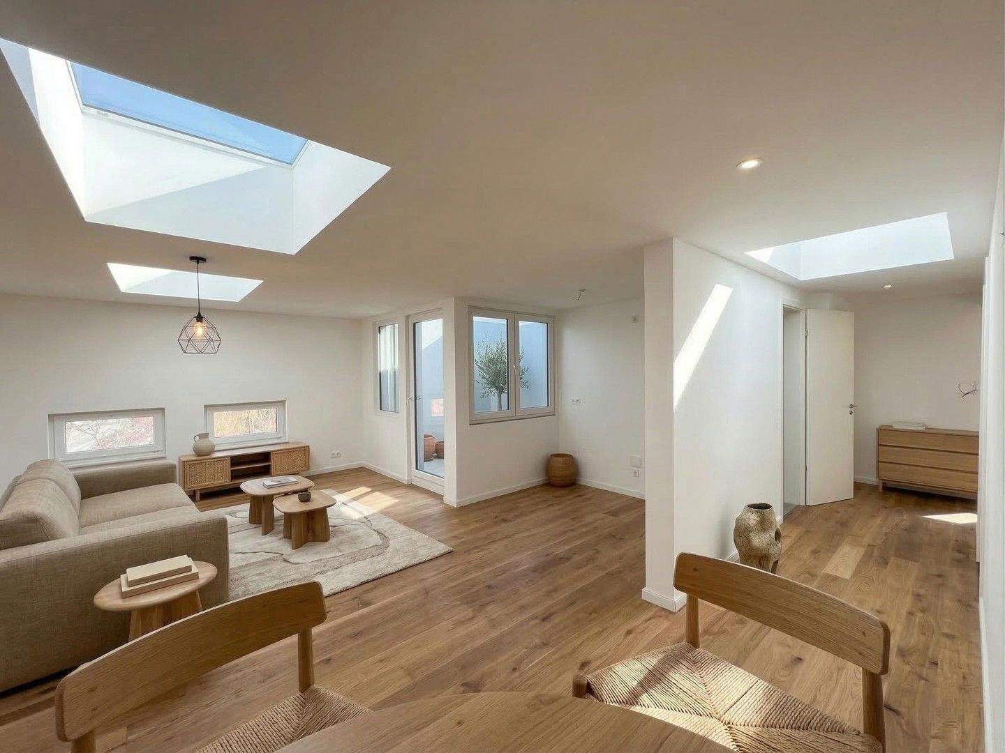 Wohn- und Essbereich - Dachgeschosswohnung mit Loggia - 442.500,00 EUR Kaufpreis, ca.  73,00 m² Wohnfläche