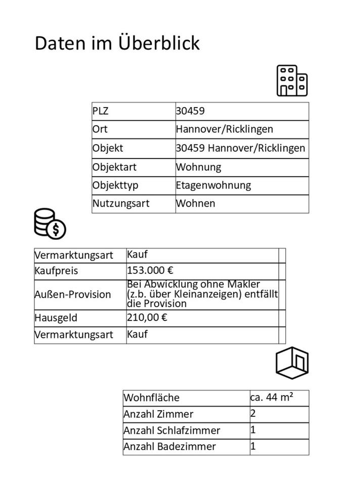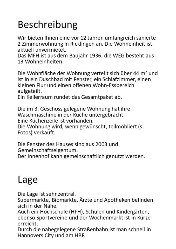 Sie befinden sich hier: 2 Zimmer Wohnung zu verkaufen in Hannover Ricklingen - 3357381888-196-3192 | 1A-Immobilienmarkt.de