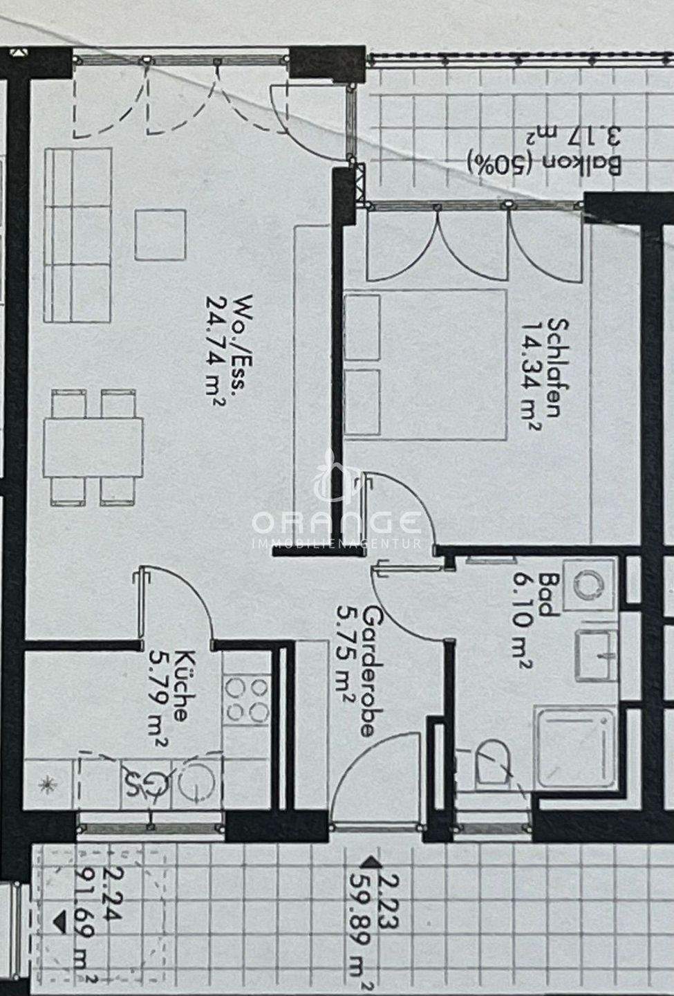 | Wohnfläche: | ca. 59,90 m² |