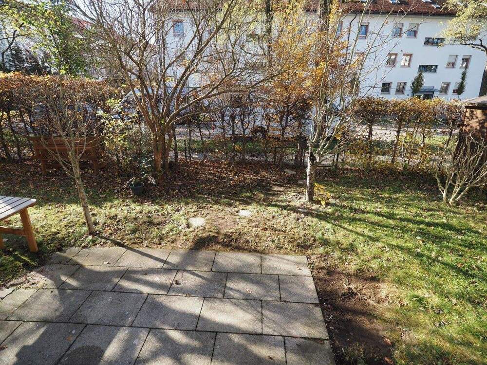 • Blick Terrasse u. Garten - 1 Zimmer Etagenwohnung zum Kaufen in Poing
