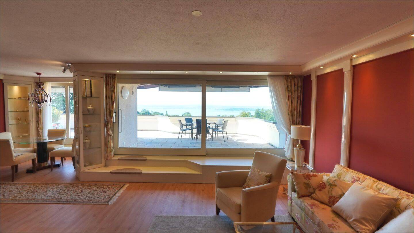 • Wohnzimmer mit Seesicht - 2 Zimmer Etagenwohnung in Meersburg