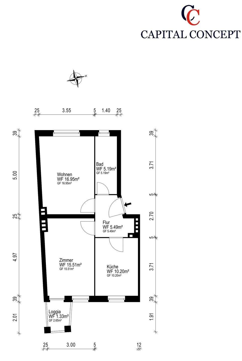 Wohnfläche:ca. 54,00 m²