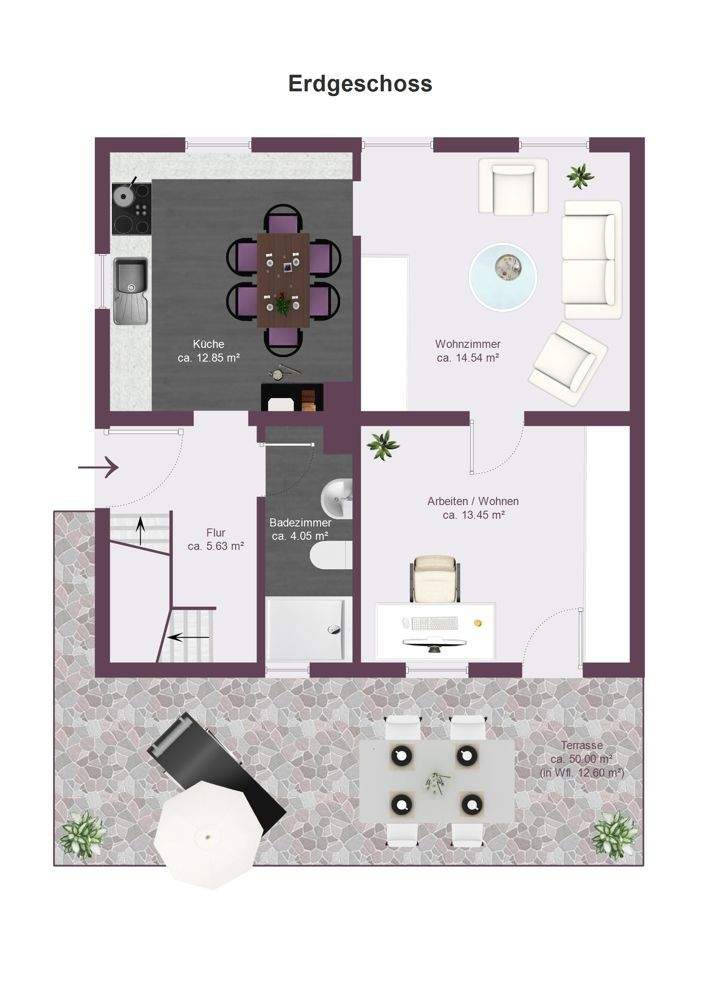 • Arbeiten Wohnen mit Zugang zur Terrasse und Garten -