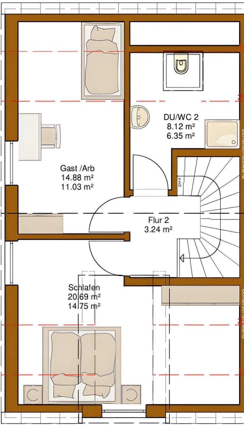 Grundriss DG - Doppelhaushälfte mit 130,00 m² in Saulheim zum Kaufen