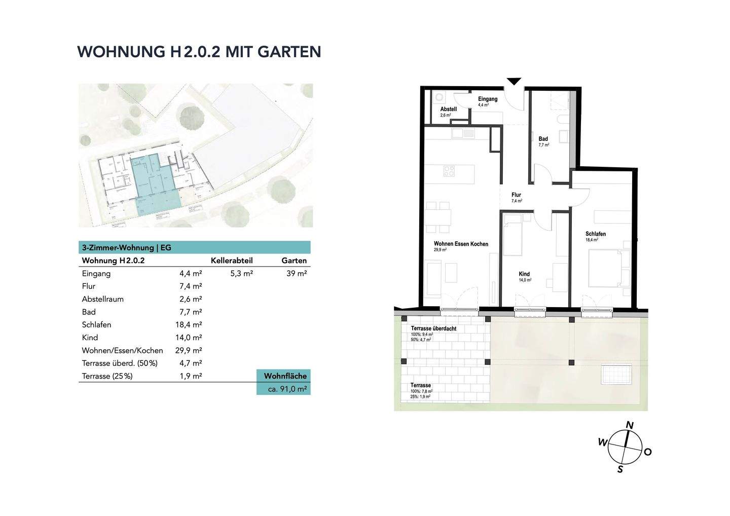 3-Zi. - Eigentumswohnung im ILLERPARK | 91,0 m² | Erstbezug (2.0.2) | Gartenanteil ca. 39 m²