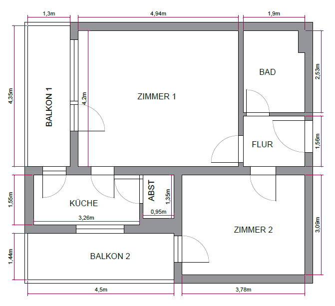 • Grundriss mit Maßangaben -