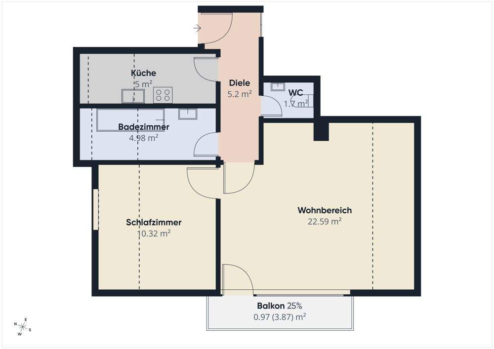 Wohnbereich mit Balkonzugang - Klein, fein, wertstabil