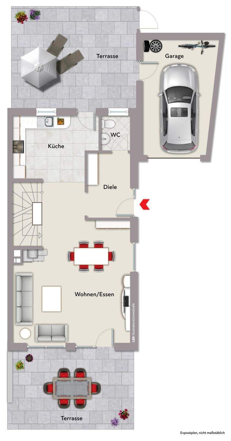 • Küchenterrasse - Zugang zur Garage -