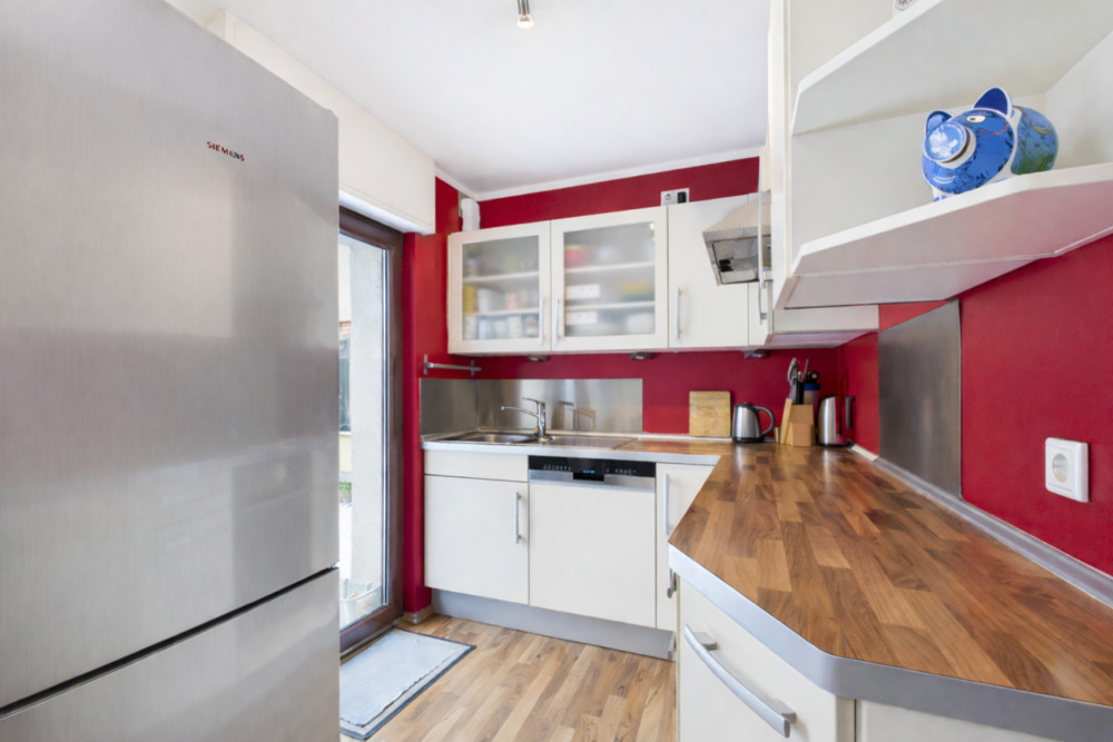 • offene und helle Küche mit Übergang zum Garten -