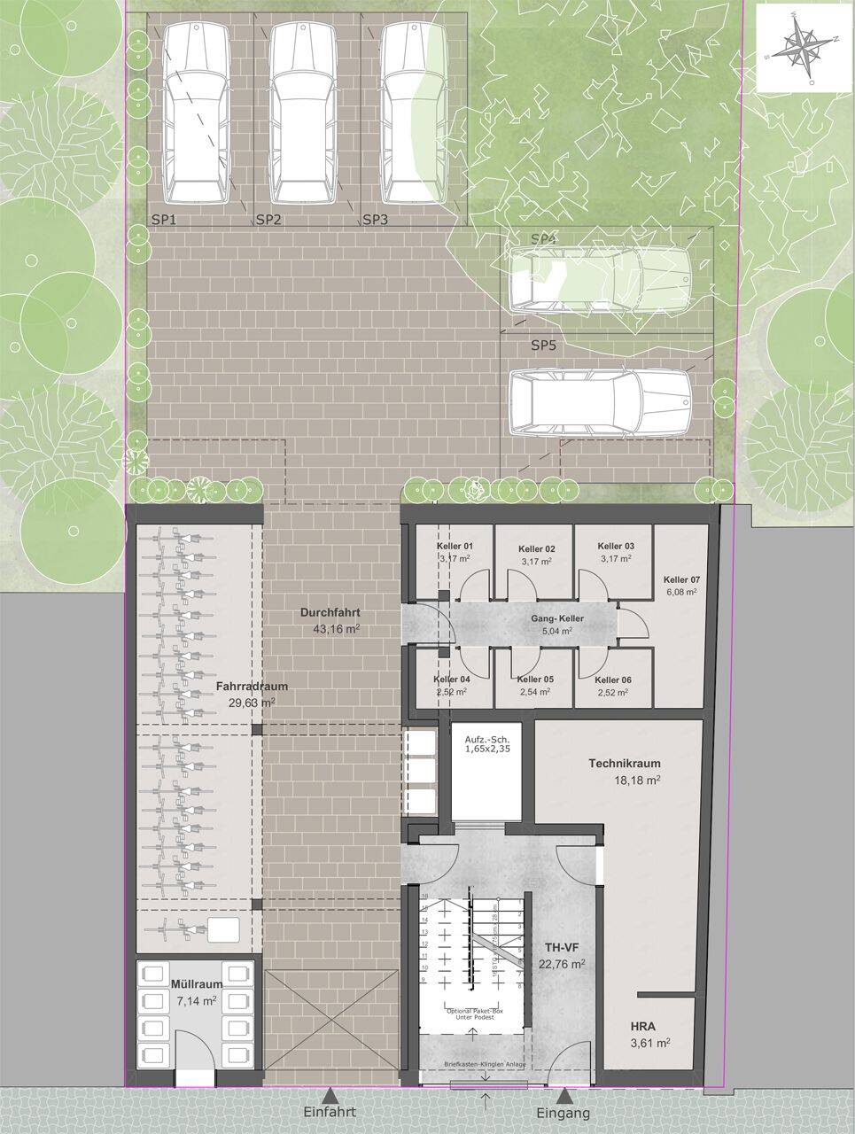 • Grundriss EG - Keller und Stellplätze -