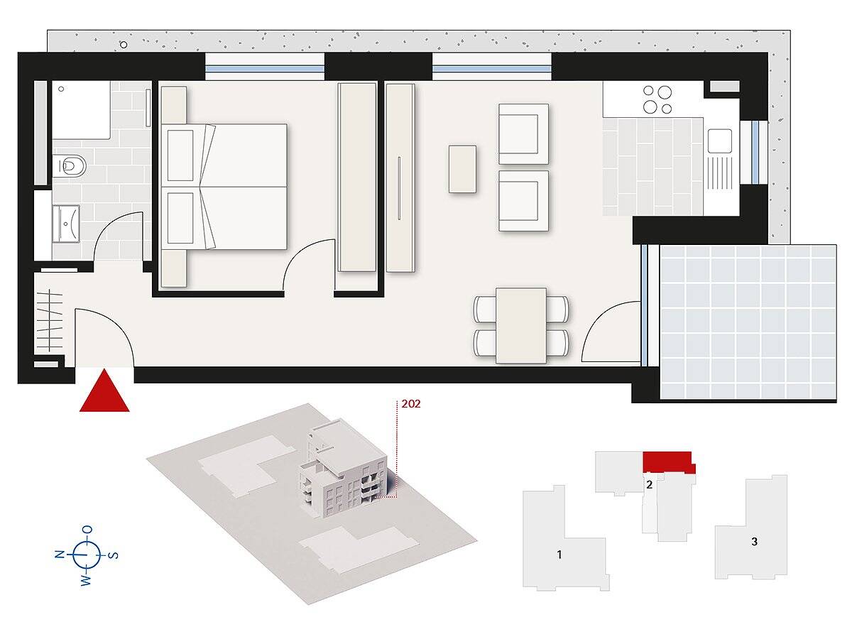 Unverbindliche Illustration Haus 2 und 3 - 2 Zimmer Etagenwohnung zum Kaufen in Dornstadt