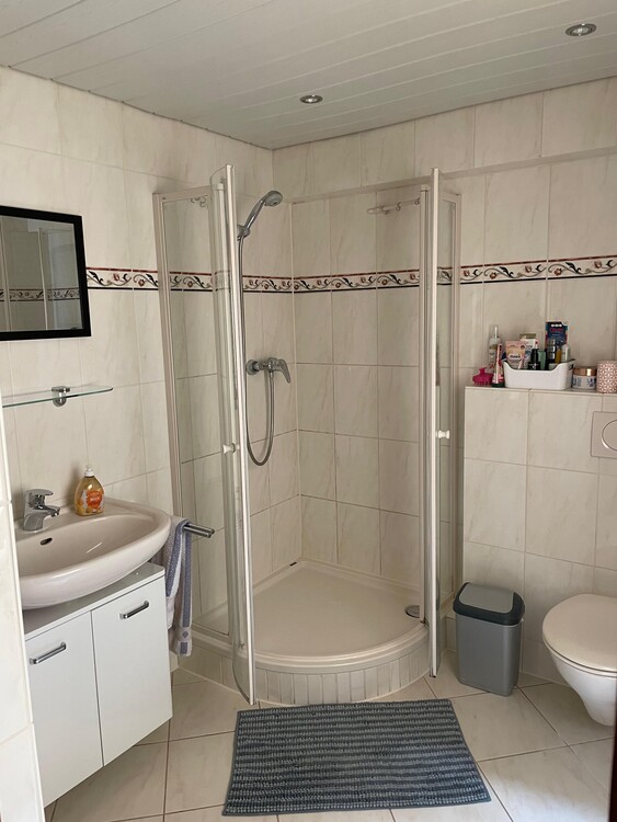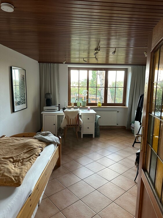 Helles Zimmer (neu renoviert und gestrichen) mit Blick in den Garten zum Seerhein hin (Nord-Richtung), Türe öffnet zur Küche. Der Boden ist hellbraun gefliest, die Wände sind mit Rauputz belegt und weiss gestrichen, Holzdecke. Ein geräumiger Kleiderschrank aus Massivholz (frisch geputzt und geölt) ist vorhanden, ebenso eine Deckenbeleuchtung. Das Zimmer ist Teil einer 2-Zimmerwohnung (55 m2). Die Wohnung hat eine separate Haustüre, die über einen geschlossenen Hof von Süden zugänglich ist, der Gang-Bereich wurde ebenfalls frisch gestrichen. Das zu vermietende Zimmer ist über die Wohnküche (Küchenzeile: Herd, Backofen, Kühlschrank, Spüle, Stauraum für Geschirr; Tisch mit 2 Stühlen) zugänglich. Das Bad beinhaltet Toilette, Duschkabine und Waschbecken sowie Wandheizkörper. In der Wohnung befindet sich ebenfalls eine kleine Waschküche mit zwei Waschmaschinen, von denen eine Waschmaschine genutzt werden kann. Das Haus liegt direkt am Seehrein, die HTWG ist in östlicher Richtung in 8 min., die Innenstadt in ca. 12 min., eine Bushaltestelle (zur Uni) in 5 min. zu Fuss erreichbar. Es gibt einen öffentlichen Parkplatz an der Sporthalle in 200 m Entfernung, dort kann ein Pkw abgestellt werden. Das Naherholungsgebiet Tägermoos/Schweiz (Joggingpfad, Fahrradweg am Wasser) ist in 5-10 min. zu Fuss erreichbar.