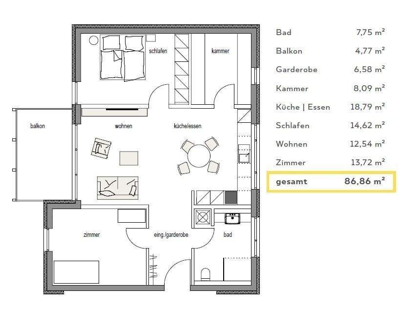 Gesamtgröße:ca. 86,00 m²