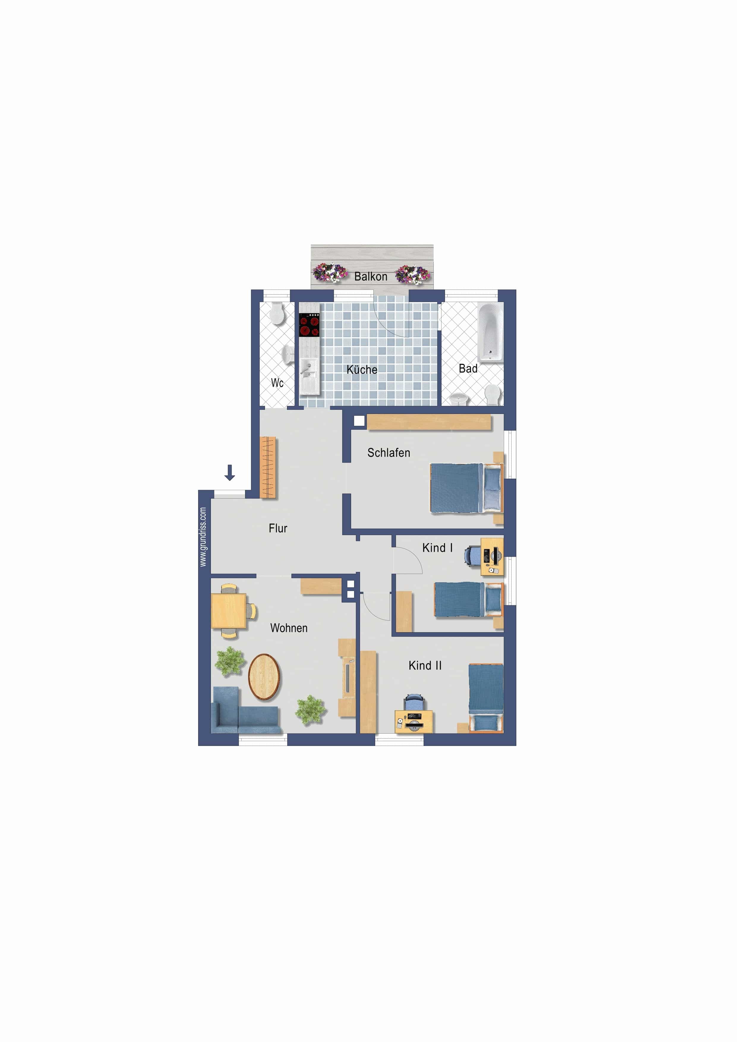 - Zimmer: 4.0, darunter 3 Schlafzimmer