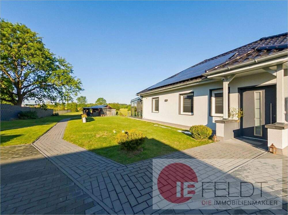 Sie befinden sich hier: Bungalow-Wohnhaus - TOP-Ausstattung, Wintergarten, Panorama-Blick, Hot Tube Pool, Erweiterungsoption in Dabergotz - 26WSQ2PQMRXR | 1A-Immobilienmarkt.de