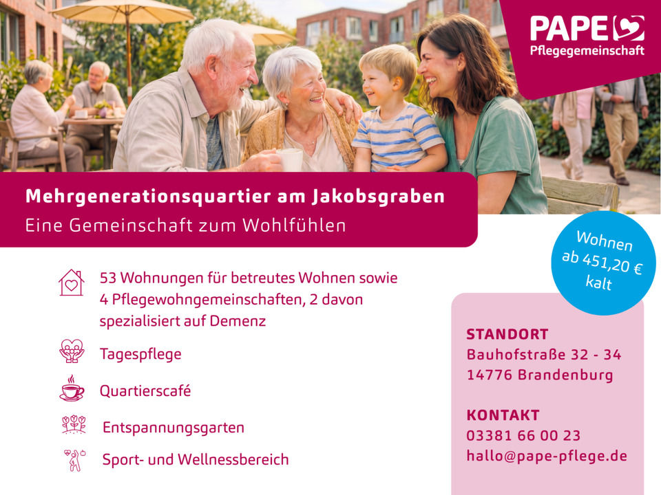 Sie befinden sich hier: Helle 1,5-Zi.-Whg im Betreuten Wohnen im Mehrgenerationsquartier in Brandenburg an der Havel Bahnhofsvorstadt - 3361286741-203-7737 | 1A-Immobilienmarkt.de