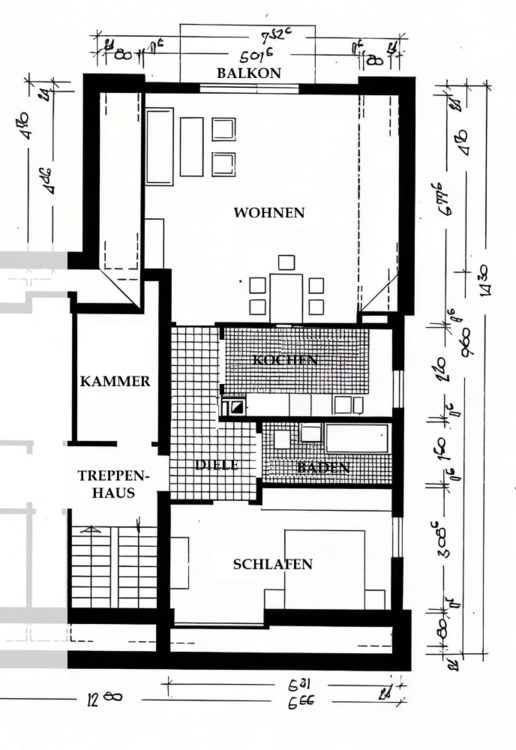 Zimmeranzahl :2 Wohnfläche :ca. 70,00 m² Baujahr :1961 Balkon :