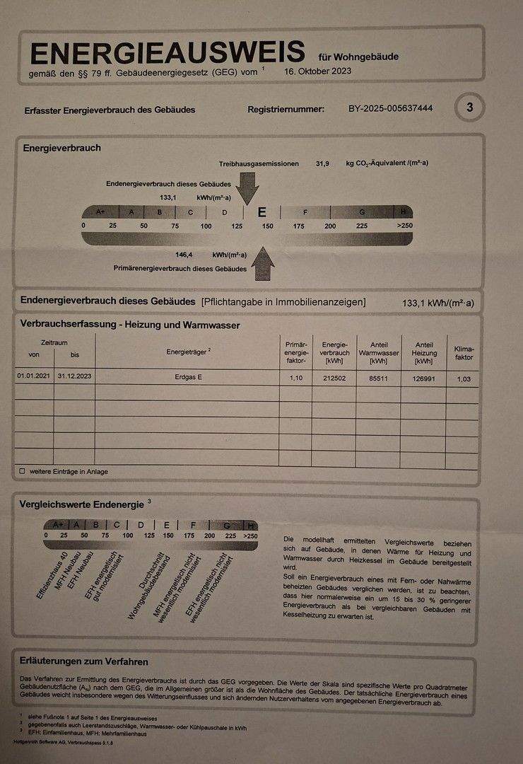 Energieverbrauchkennwert:133 kWh/(m²·a) kWh/(m²·a)