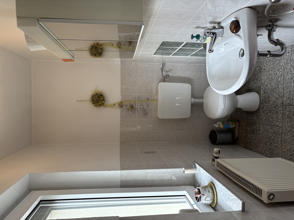 Im Kellergeschoss befindet sich das derzeitige Badezimmer mit Badewanne sowie ein weiterer Raum mit Dusche, beides zwar nutzbar, langfristig jedoch modernisierungsbedürftig, da nicht mehr zeitgemäßer Standard. Ein Neubau eines modernen Bades im Erdgeschoss ist realisierbar und würde den Wohnkomfort erheblich steigern. Von der Diele aus erreichen Sie außerdem ein Gäste-WC, das bereits modern gestaltet ist und damit sofort praktisch nutzbar bleibt.