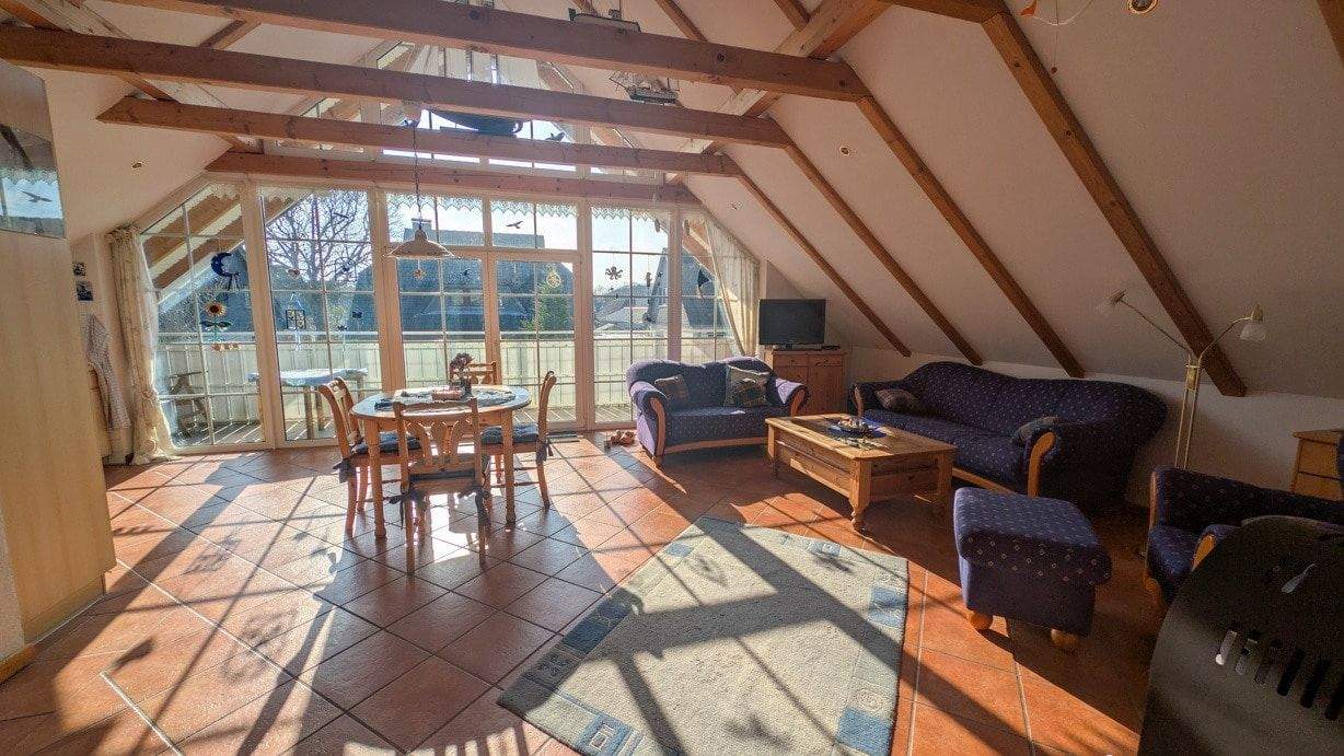 Wohn- und Esszimmer im Dachgeschoss mit Zugang zum Balkon -